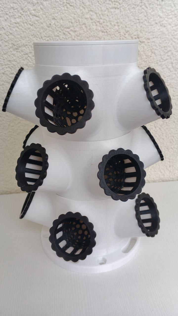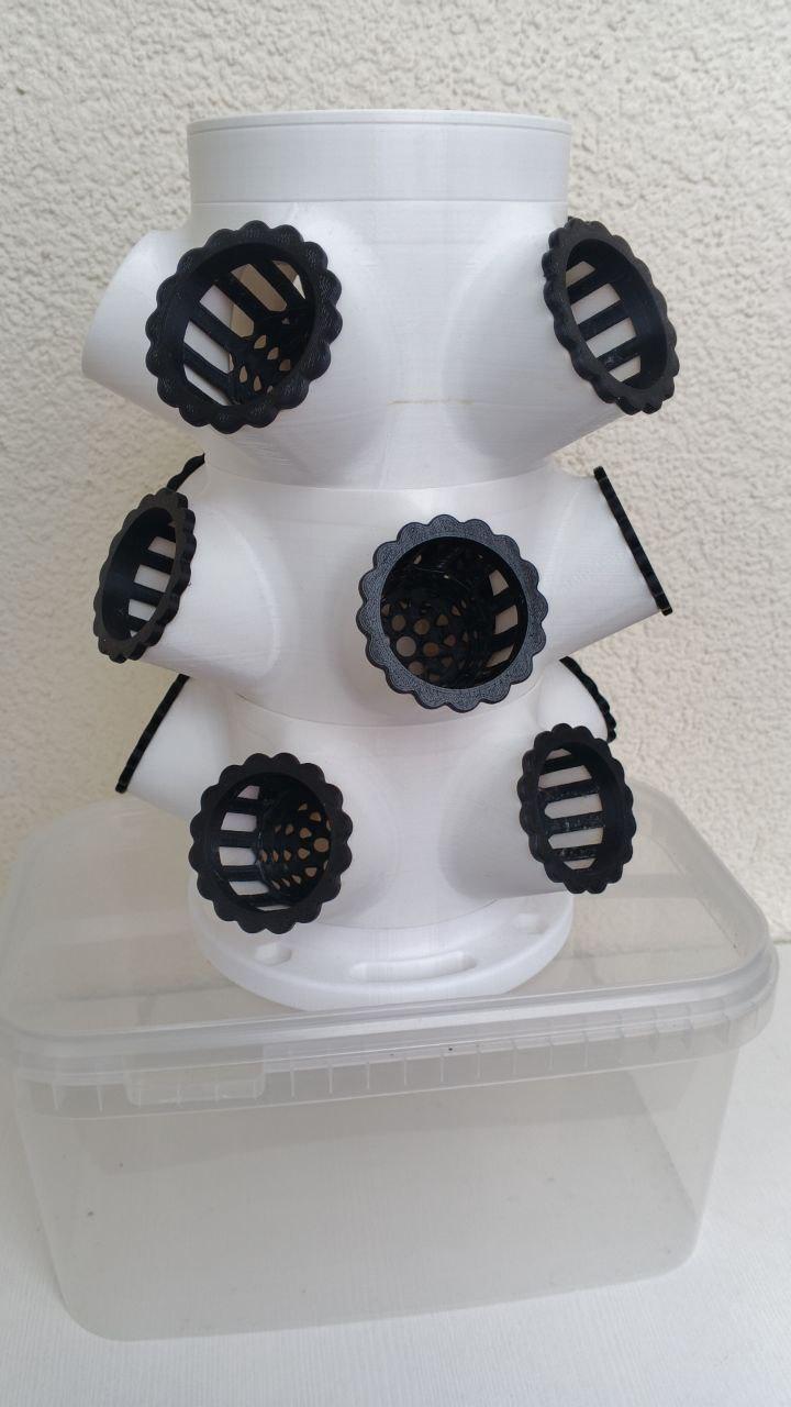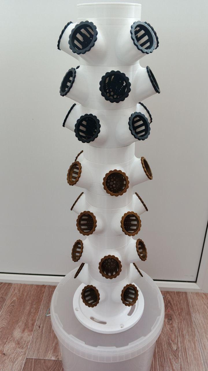 За 2000 рублей можно купить башню гидропоники из трёх секции (без расширителей), все фитинги и насадку на практически любое пластиковое ведро (начиная объёмом от от 2-х литров), главное чтобы крышка от ведра вместила насадку диаметром 18, 15 или 13 см (есть три варианта на выбор) - при заказе вы можете сообщить нужный размер. Насадка используется как шаблон чтобы вырезать в крышке нужные отверстия. Вам останется докупить подходящий насос, питательный раствор для роста и освещение (при необходимости). Каждая секция на пять посадочных мест (внутренний диаметр посадочного места - 37 мм, глубина - 54 мм), диаметр ствола башни - 10 см. Настольную гидропонную башню можно расширять до десяти и более секций, если объём ведра будет достаточным - оптимально ок 10 литров, для 3-5ти секций достаточно ведра 2-5 литров. Также продаю дополнительные секции и расширители на 3 и 5 см для башен диаметром 10 см и 7,5 см. На фото показаны варианты сборки с десятилитровым ведром, ведро не продаю.